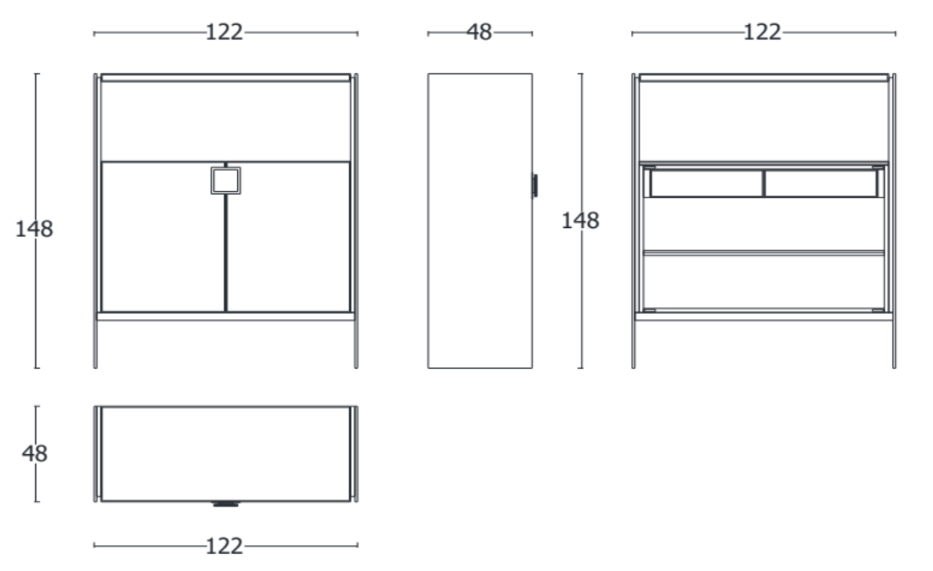 L 122 × P 48 × H 148