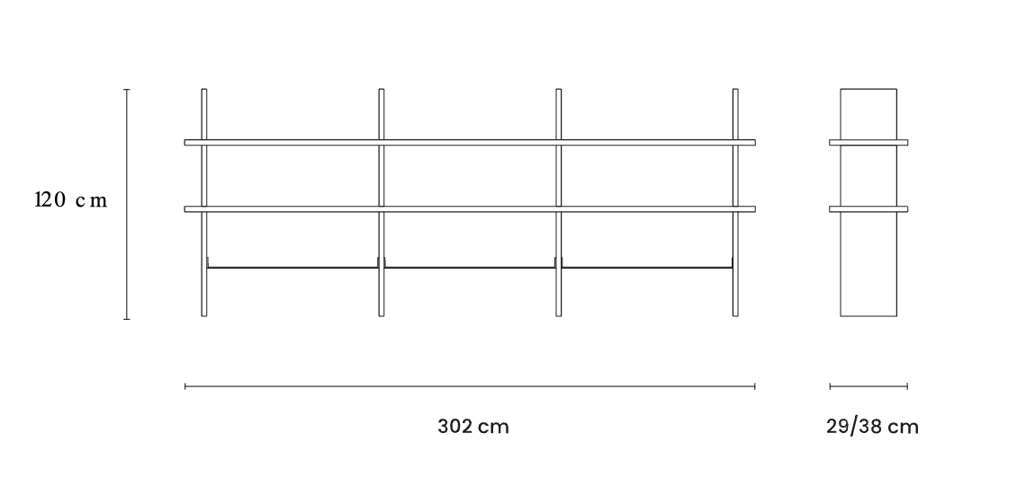 L 302 × P 38 × H 120