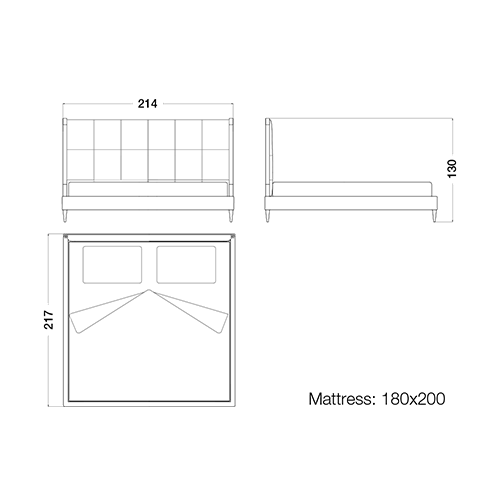 Lit avec Tête de Lit | Taille de matelas: 200 × 200 cm
