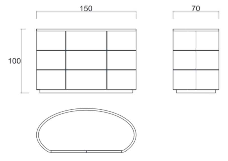 L 150 × P 70 × H 100