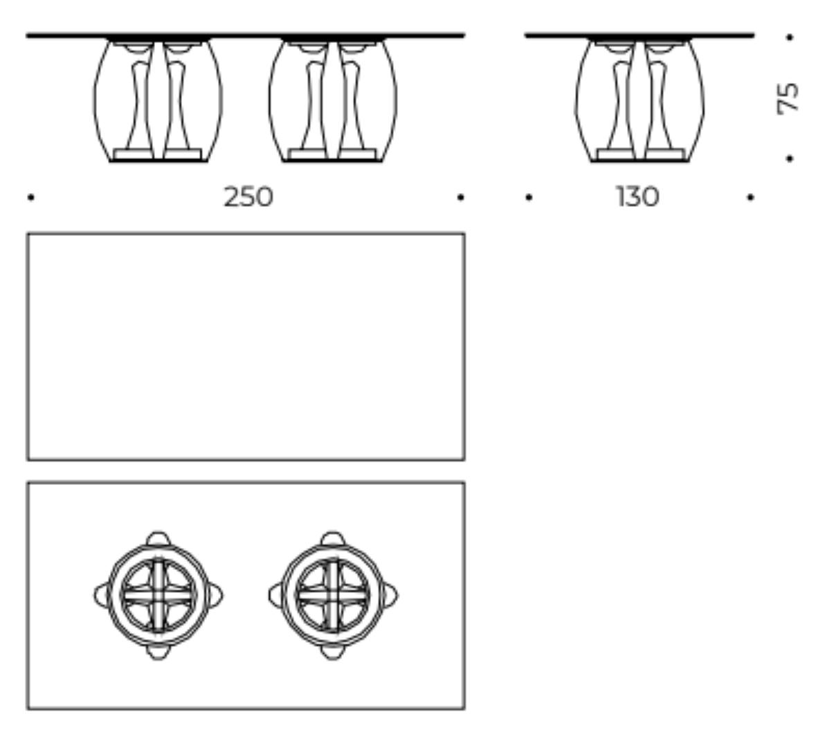 L 250 × P 130 × H 75